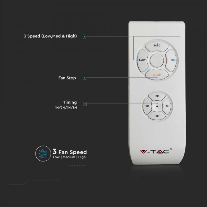 LED CEILING FAN WITH RF CONTROL/3 PC PLASTIC BLACK BLADES/65W AC MOTOR 52"(132CM) 3 SPEED