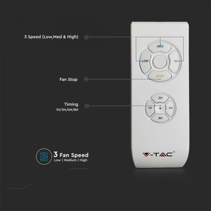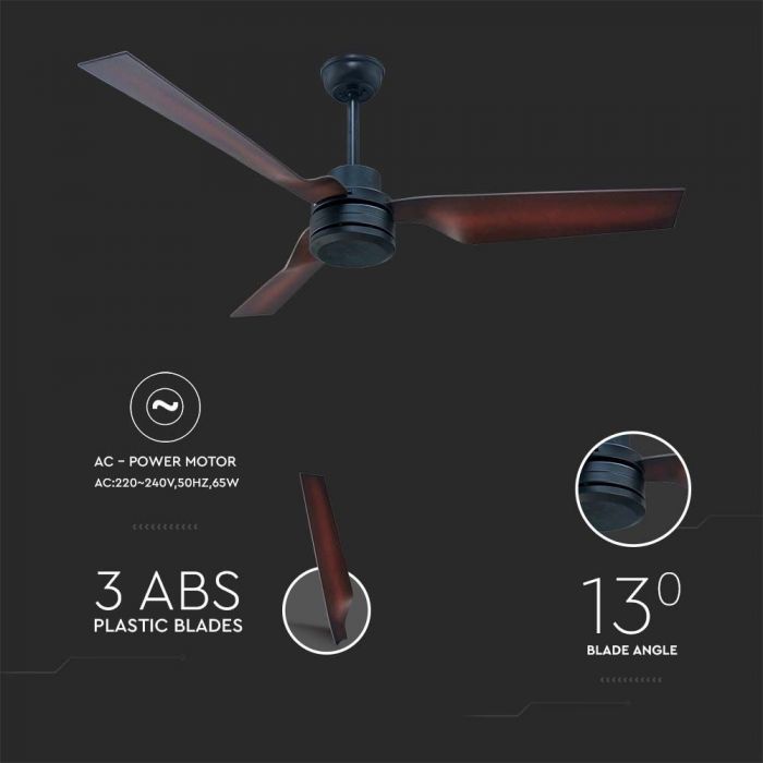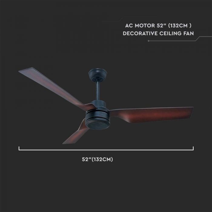 LED CEILING FAN WITH RF CONTROL/3 PC PLASTIC BROWN BLADES/65W AC MOTOR 52"(132CM) 3 SPEED