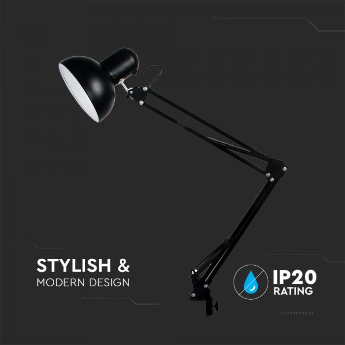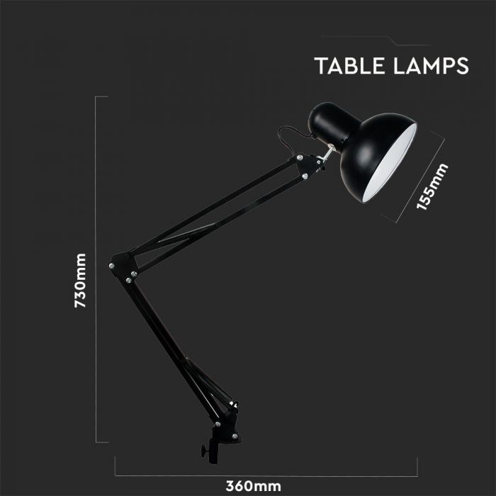 LED DESIGNER TABLE LAMP Metal Adjustable Bracket+Switch & E27 Holder 120° 36X15.5X73 BLACK
