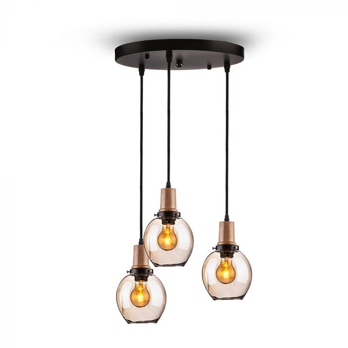 LED E27 PENDANT TRIO GLASS WITH GLASS LAMPSHADE 30X130 AMBER