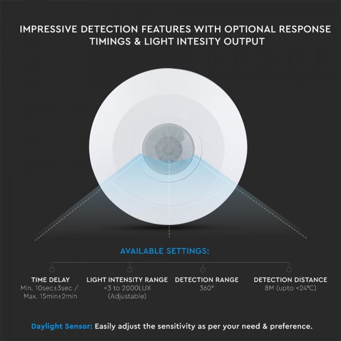 - Adjustable Time Delay - Ambient light - Detection distance for versatile scenarios
