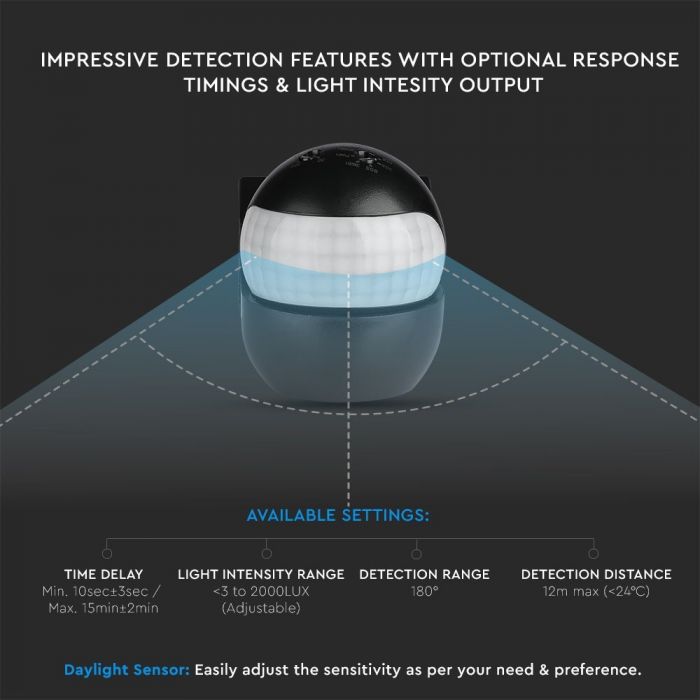 - Adjustable Time Delay - Ambient light - Detection distance for versatile scenarios