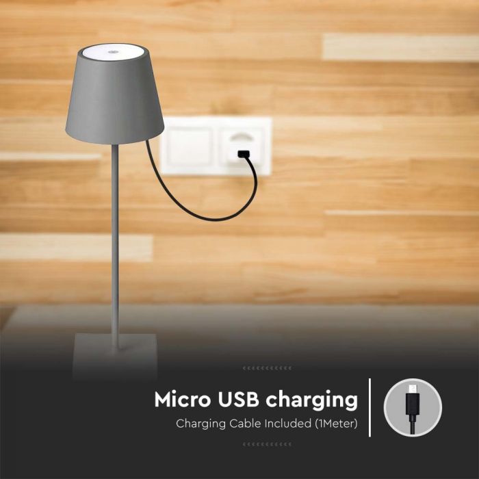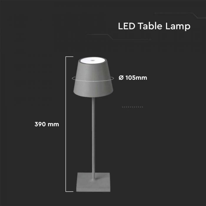 LED RECHARGEABLE DESK LAMP TOUCH DIMMABLE WW 3W 70lm GREY BODY