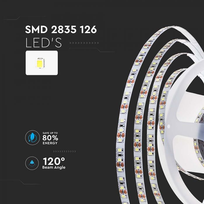 LED STRIP LIGHT 2835 SMD 126LEDs WW 1100Lm 8W/M 5M 24V