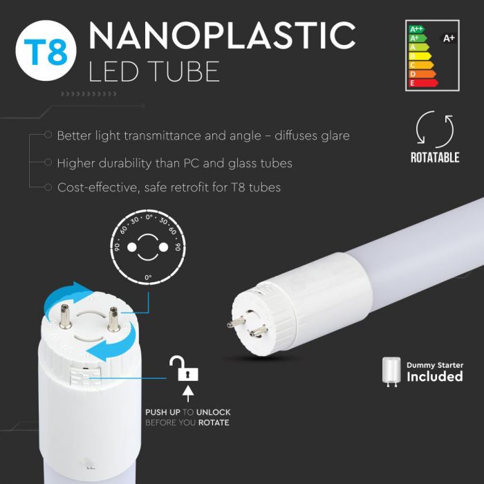 LED T8 ROTATING TUBE 10W WW 800lm 2FT 160° Frosted