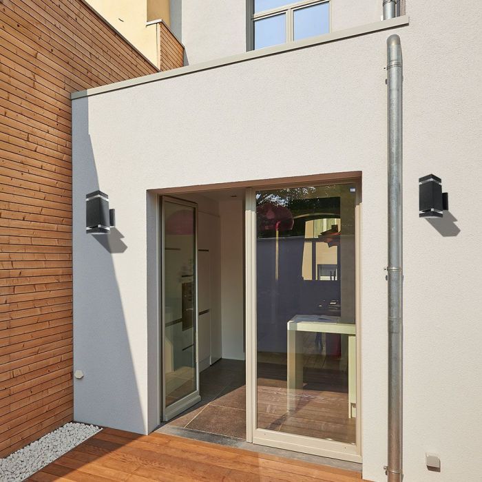LED WALL FITTING SQUARE BLACK PC E27x2 91X150X228 IP44