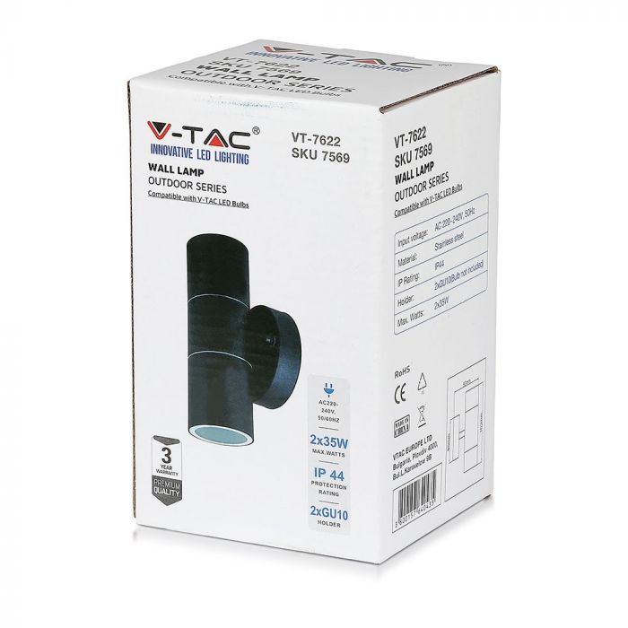 LED WALL FITTING STAINLESS STEEL GU10 2WAY 93X85X163 IP44 BLACK