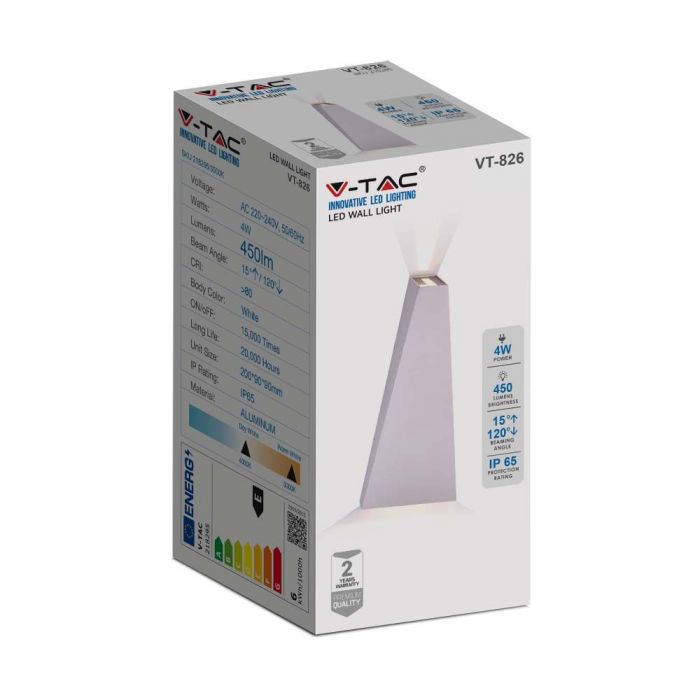 LED WALL LIGHT ALUMINIUM 4W WW 450lm 120° 90X200X90 WHITE IP65