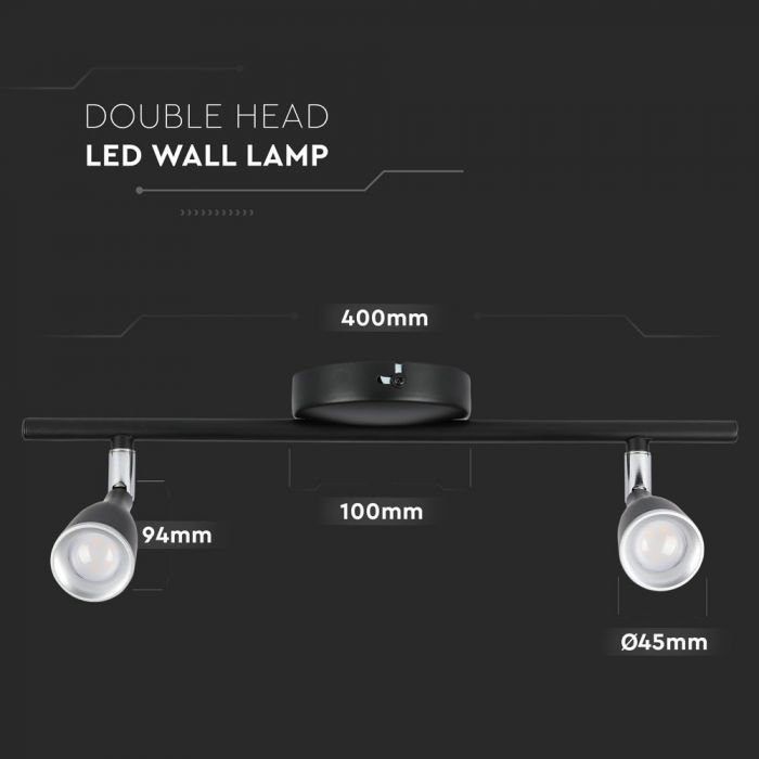 LED WALL LIGHT BLACK 9W WW 720lm 100° 400X100X94 PLASTIC+METAL