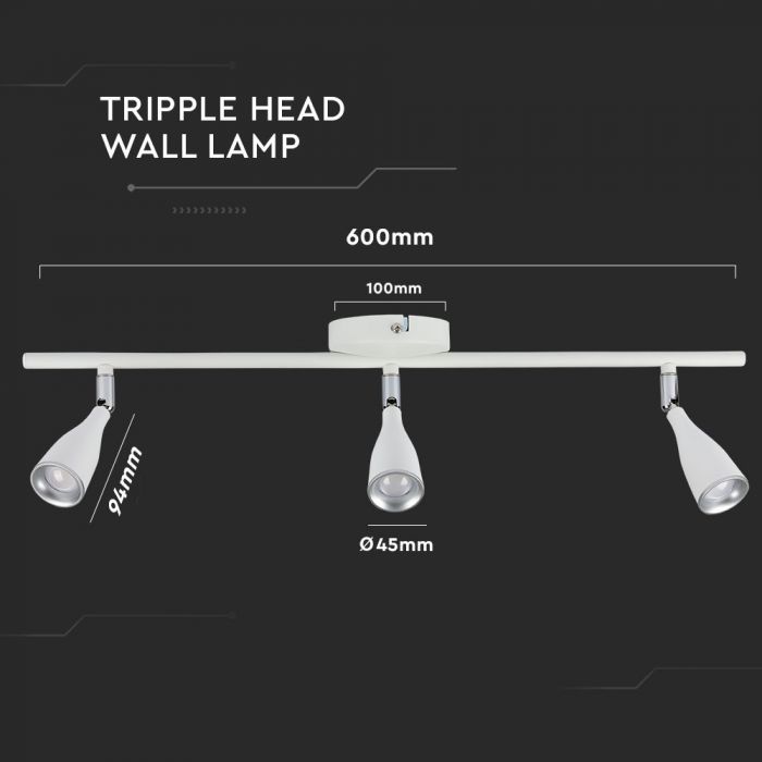 LED WALL LIGHT WHITE 13.5W DL 1080lm 100° 600X100X94 PLASTIC+METAL